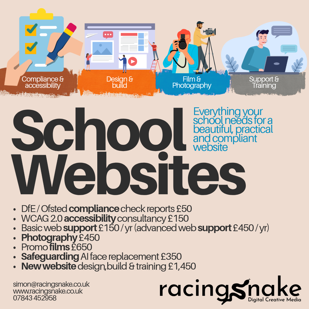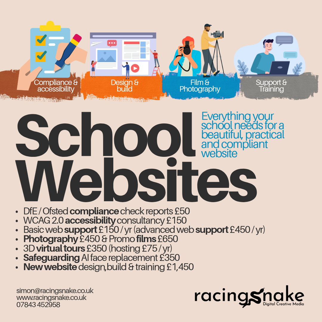Already supporting a wide variety of school websites, Racing Snake has streamlined its services to be even more clear and to offer compliance and accessibility consultancy on top of its design and support services.